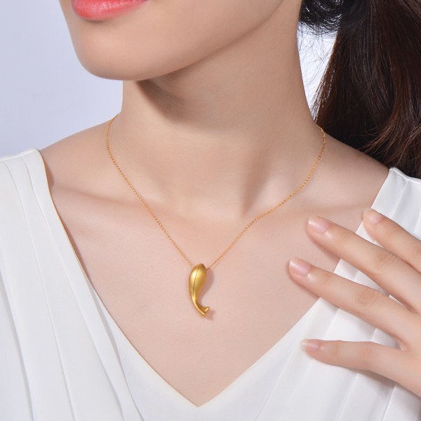 黄金吊坠新款足金挂坠999黄金磨砂小蓝鲸吊坠18K金项链女细链正品