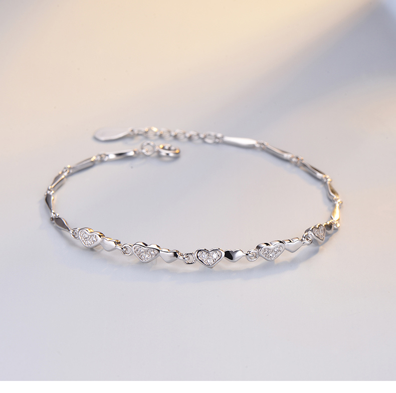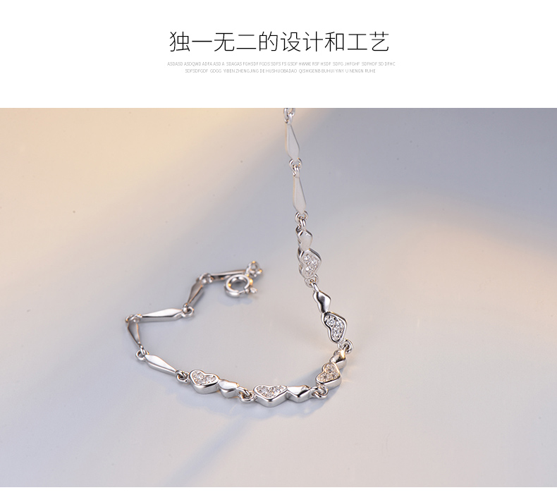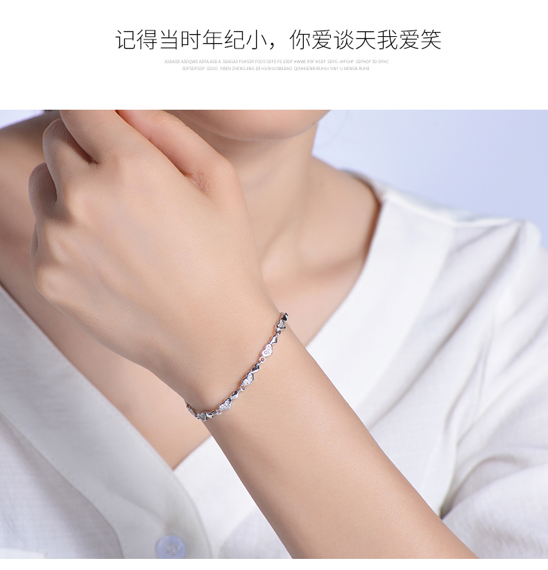 爱心双心手链女S925银手串气质清新简约森系学生闺蜜个性学生手环