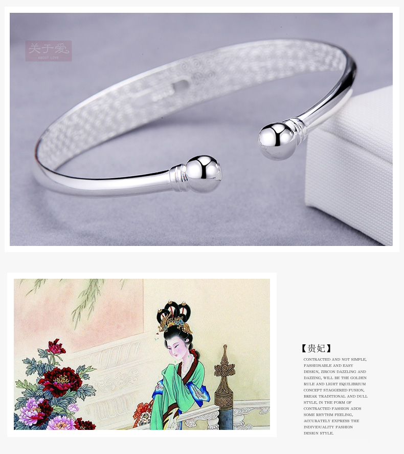 设计点:贵妃 时尚手镯 经典简爱足银 送父母 送爱人 生日礼物 表白礼物 情人节礼物 |
