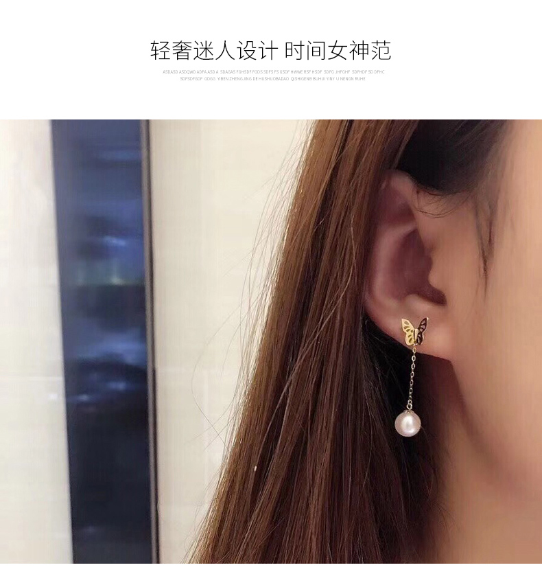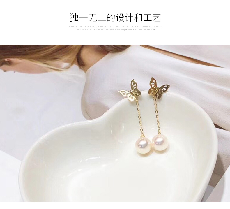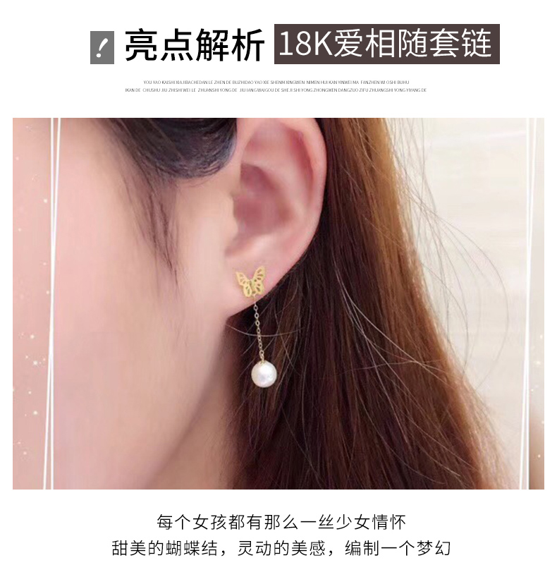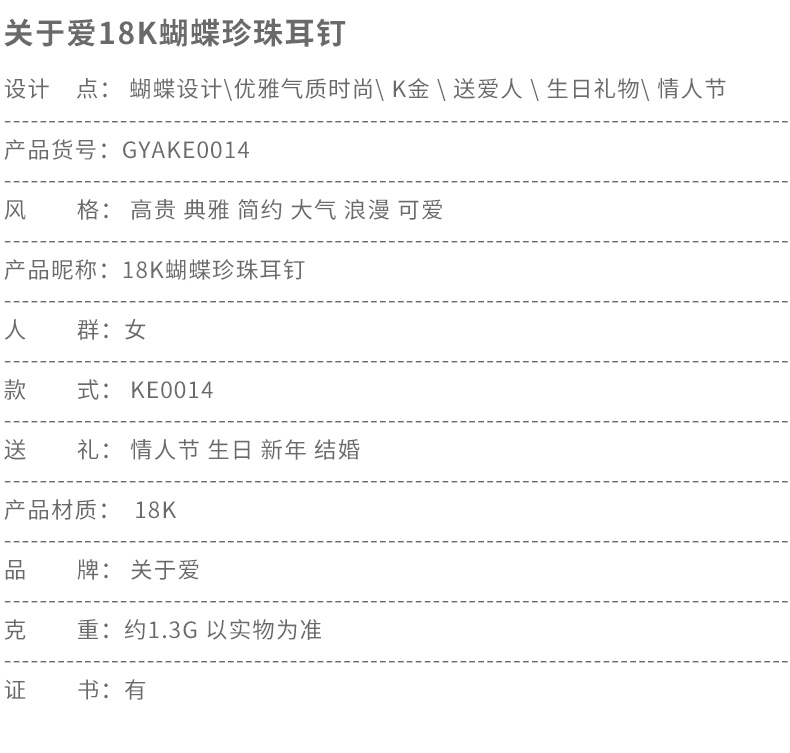18K耳钉女迷你珍珠蝴蝶结日韩时尚简约18k金玫瑰金正品耳饰送女友