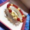 真金天然红玛瑙黄金貔貅手串足金999转运珠3D硬金皮丘纯金首饰