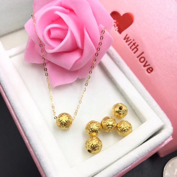 硬金金钱转运珠路路通吊坠+18k金调节项链