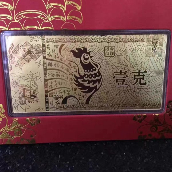1克金钞 金鸡献瑞,足金999新年送礼佳品,员工年终奖选择