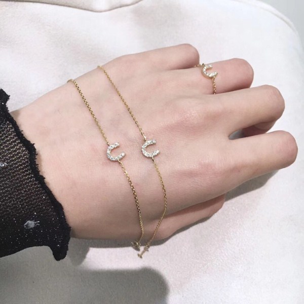 日本cocoshnik同款小清新系列 马蹄 单钻 三钻手链?链条戒指