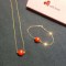 18k金精美朱砂转运珠项链手链耳钉时尚简约百搭朱砂耳钉项链手链