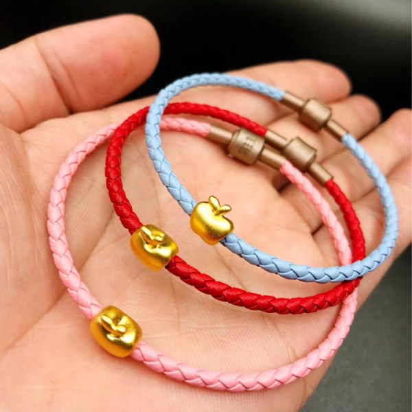 【圣诞节平安夜礼物】硬金苹果克重0.35-0.4克+皮绳三色〔粉.红.蓝〕