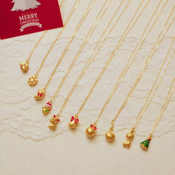18K项链硬金小萌宠可爱圣诞礼物圣诞树苹果铃铛麋鹿手套 一件代发