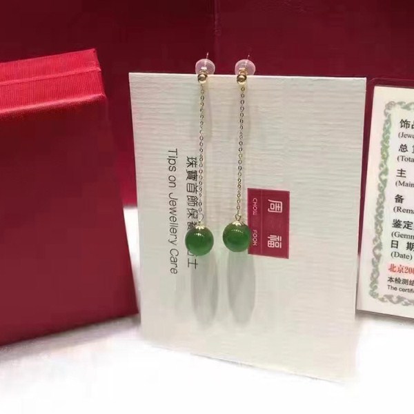 18K金碧玉耳线,金珠3mm,碧玉珠8mm,长度5cm,一款两用,时尚 优雅。399 /对。