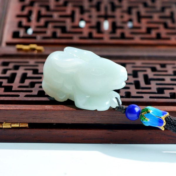 正品天然翡翠十二生肖吊坠兔子 手工立体雕刻 男女款属相项链玉坠