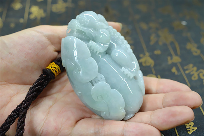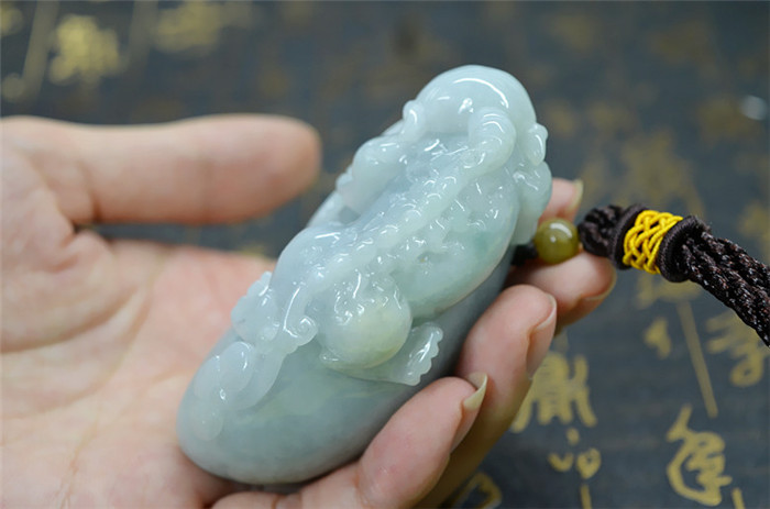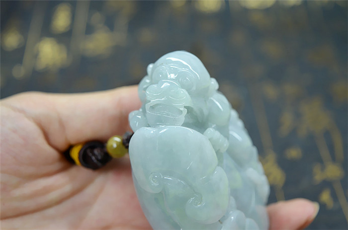 天然缅甸玉石望子成龙手玩 精雕翡翠A货貔貅手把件玉把玩